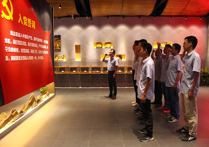 鮮豔的黨旗下,入黨誓言響徹展館大廳,全體黨員在領誓人的帶領下,高舉右手,麵向黨旗(qí)莊嚴宣誓(shì):“我誌願加(jiā)入中國共產黨,擁護(hù)黨的綱領,遵守黨的章程,履行黨員義務……”他們聲音鏗鏘堅定,表達(dá)了為共產主義(yì)事業奮鬥終(zhōng)身的決心和信(xìn)心。
