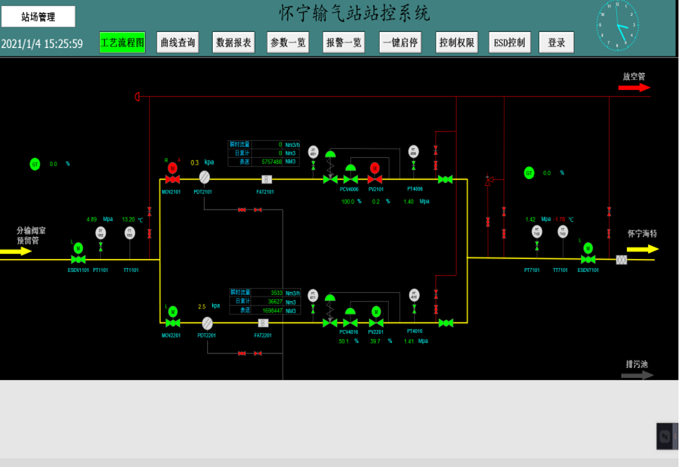 懷寧輸氣站受洪災影響,原自控係統毀損嚴重需重新組建。中心技術人員前期在自控實驗室(shì)內完成新係統的設計、模擬試驗,現(xiàn)場采用WinCC組態,優化站控係統配置,設置(zhì)設備操作、數據分析及(jí)故(gù)障報警等功能,曆經一個多月完成該站的站(zhàn)控係統更(gèng)新及遠程控(kòng)製工(gōng)作(zuò)。