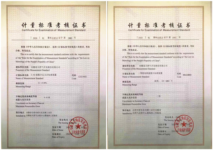 12月23日,省蜜芽my77738公司順利(lì)取得安徽省市場監督管理局核發的《計量標準考核證書》。此證書的取得標誌著省蜜芽my77738公司具備(bèi)了非貿易計量壓力、溫度儀表的自行檢定/校(xiào)準資格,是公司計量管控(kòng)的跨越性進步,也是公司成立熱工實驗室以來在業務能力擴展方(fāng)麵(miàn)取得的重要突破。